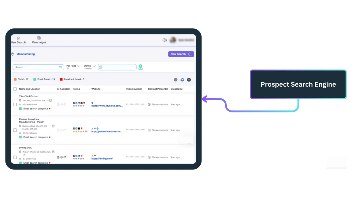 Search, click, and display the verified contact info of decision-makers in seconds.